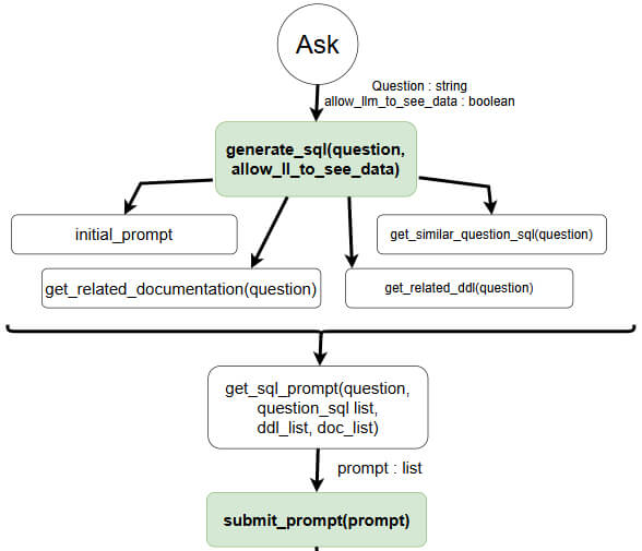 Dans cet article nous allons nous concentrer sur la partie “Ask” de Vanna car c’est à cette étape que l’on va interagir avec l’intelligence artificielle. Le but est de comprendre ce qu’il se passe réellement pour générer le code SQL.