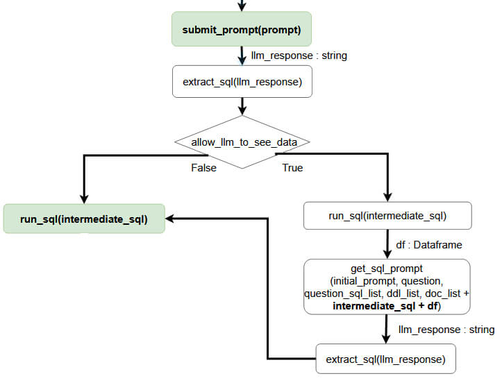À la fin de cette condition, on extrait le SQL généré par la nouvelle réponse du LLM pour ensuite l'exécuter grâce à la méthode run_sql.